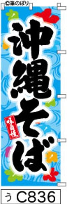 【沖縄そば】のぼり旗|送料無料 目立つ手書き筆文字[c836]水色伝統柄黒