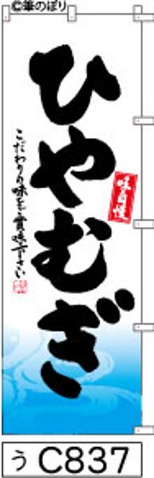 【ひやむぎ】のぼり旗|送料無料 目立つ手書き筆文字[c837]白地に水色波模様黒