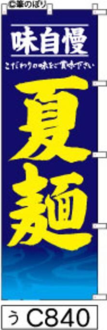 【夏麺】のぼり旗|送料無料 目立つ手書き筆文字[c840]青グラデーションに波柄黄色