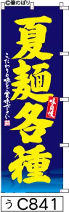 【夏麺各種】のぼり旗|送料無料 目立つ手書き筆文字[c841]青グラデーションに波柄黄色