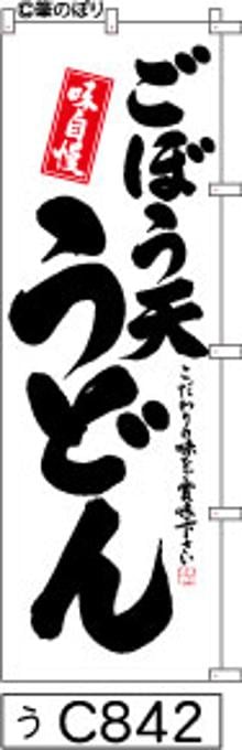 「のぼり【ごぼう天うどん】白地に黒の手書き筆文字[うC842](商標登録番号6807113)『受注生産』」