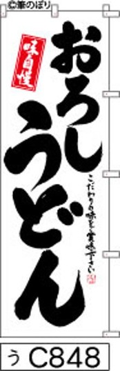 「のぼり【おろしうどん】白地に黒の手書き筆文字[うC848](商標登録番号6807113)『受注生産』」