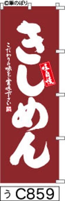 「のぼり【きしめん】赤茶の白抜き手書き筆文字[うC859](商標登録番号6807113)『受注生産』」