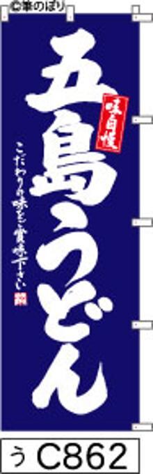 「のぼり【五島うどん】青の白抜き手書き筆文字[うC862](商標登録番号6807113)『受注生産』」