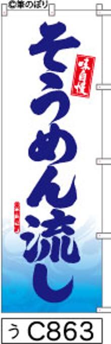 「のぼり【そうめん流し】白地に水色の流水青の手書き筆文字[うC863](商標登録番号6807113)『受注生産』」