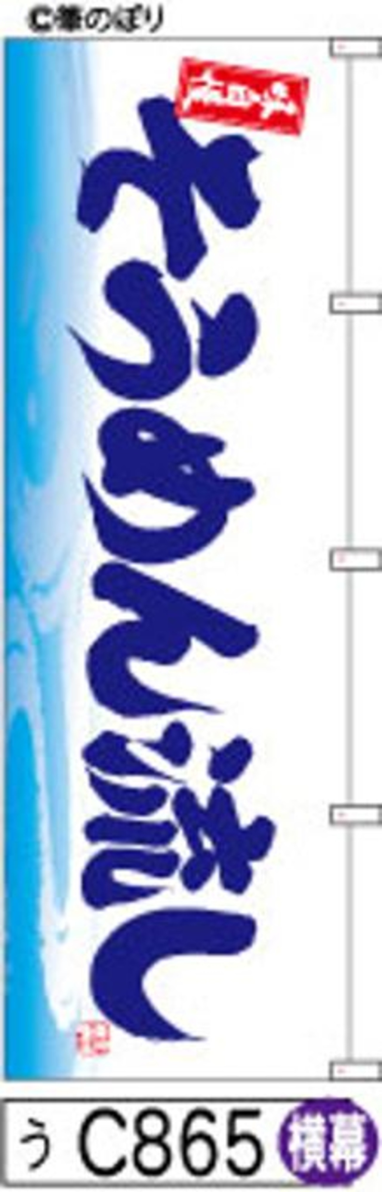 清潔感のある白地に水色の波模様が施され、見た目にも涼しげな印象を与えます。特に夏のイベントやお店の屋外スペースに最適で、通行人の視線をしっかりと捉え、爽やかな雰囲気を引き立てます。イベント会場やお店の装飾として、周囲を華やかに彩ることができます。ぜひあなたの店舗やイベントに掲げて、この素晴らしい雰囲気をお楽しみください。