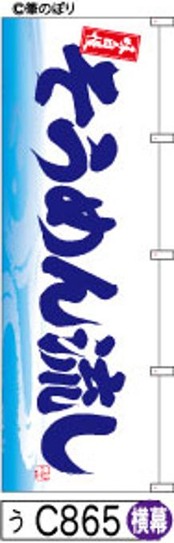 「横幕【そうめん流し】白地に水色波模様青の手書き筆文字[うC865](商標登録番号6807113)『受注生産』」