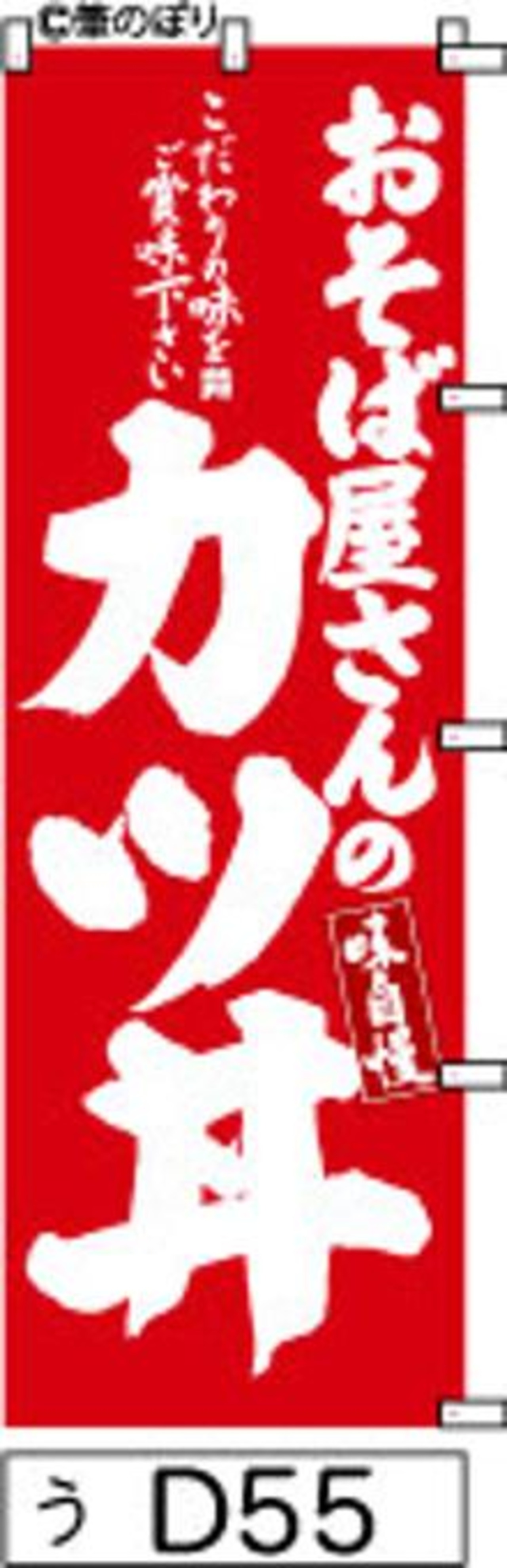 「のぼり【おそば屋さんのカツ丼】赤の白抜き手書き筆文字[うD055](商標登録番号6807113)『受注生産』」