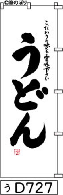 「のぼり【うどん】白地に黒の手書き筆文字[うD727](商標登録番号6807113)『受注生産』」