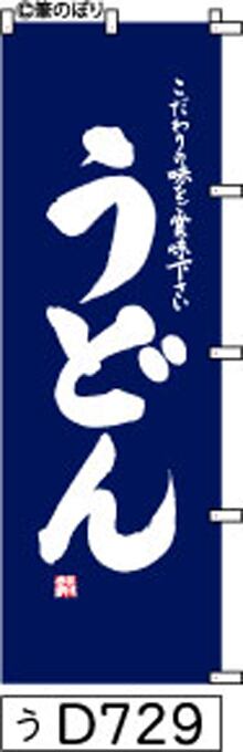 「のぼり【うどん】紺の白抜き手書き筆文字[うD729](商標登録番号6807113)『受注生産』」