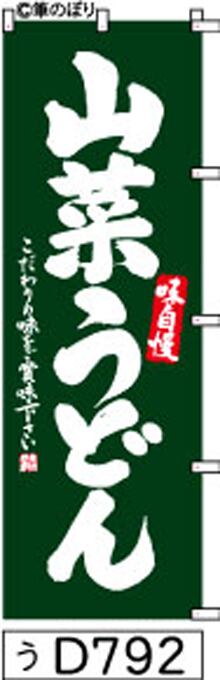 「のぼり【山菜 うどん 緑の白抜き】手書き筆文字[d792](商標登録番号6807113)『受注生産』」