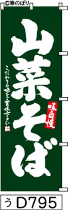 「のぼり【山菜 そば 緑の白抜き】手書き筆文字[d795](商標登録番号6807113)『受注生産』」
