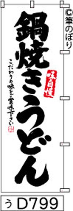 「のぼり【鍋焼きうどん 白地に黒】手書き筆文字[d799](商標登録番号6807113)『受注生産』」