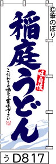 「のぼり【稲庭うどん 白地に濃紫】手書き筆文字[d817](商標登録番号6807113)『受注生産』」
