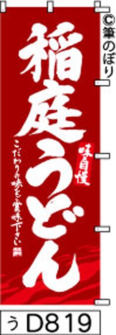 「のぼり【稲庭うどん エンジの白抜き】手書き筆文字[d819](商標登録番号6807113)『受注生産』」