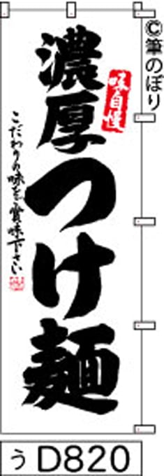 「のぼり【濃厚 つけ麺 白地に黒】手書き筆文字[d820](商標登録番号6807113)『受注生産』」
