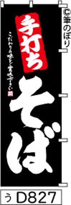 「のぼり【手打ちそば 黒の白抜き】手書き筆文字[d827](商標登録番号6807113)『受注生産』」