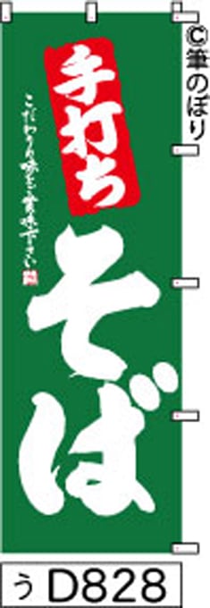 「のぼり【手打ちそば 緑の白抜き】手書き筆文字[d828](商標登録番号6807113)『受注生産』」