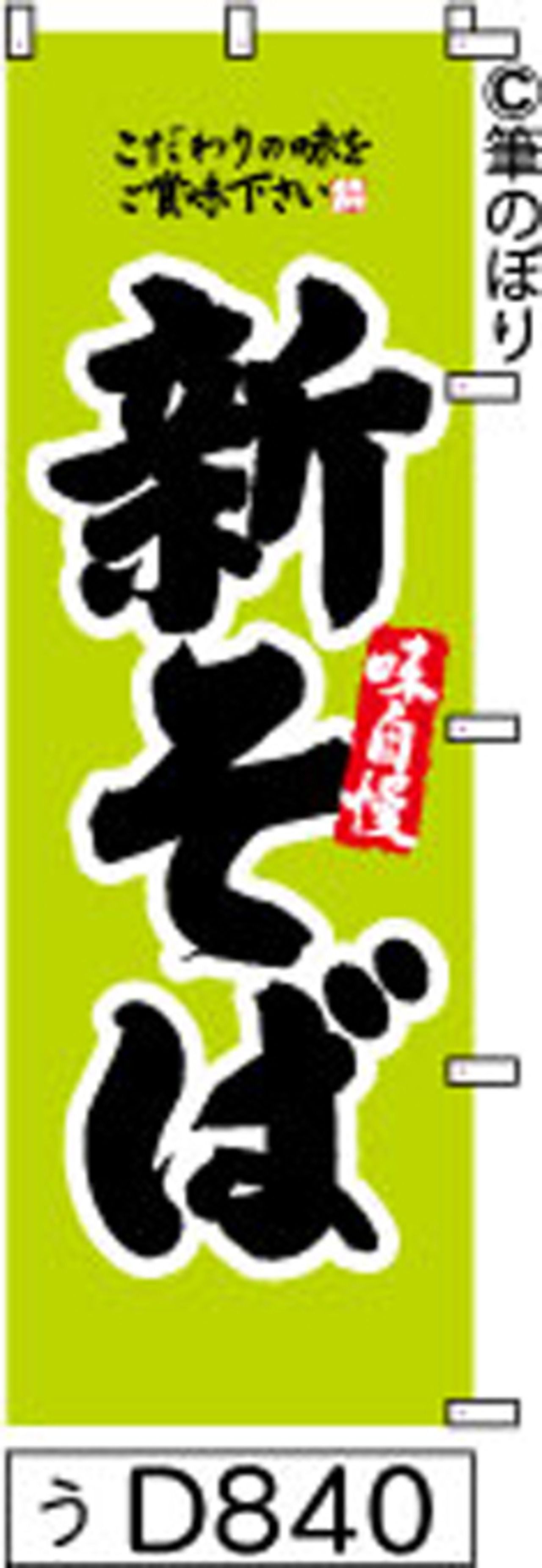 「のぼり【新そば 黄緑に黒】手書き筆文字[d840](商標登録番号6807113)『受注生産』」