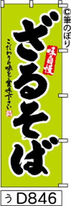 「のぼり【ざるそば 黄緑に黒】手書き筆文字[d846](商標登録番号6807113)『受注生産』」