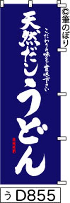 「のぼり【天然だし うどん 紺の白抜き】手書き筆文字[d855](商標登録番号6807113)『受注生産』」