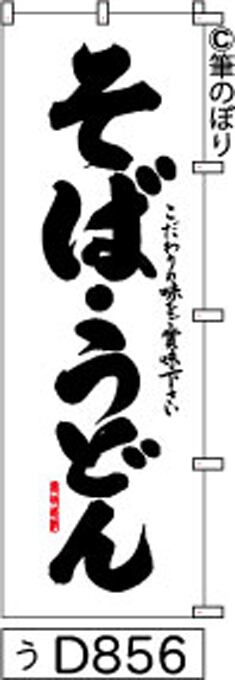 「のぼり【そば うどん 白地に黒】手書き筆文字[d856](商標登録番号6807113)『受注生産』」