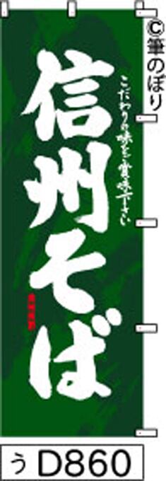 「のぼり【信州そば 緑模様の白抜き】手書き筆文字[d860](商標登録番号6807113)『受注生産』」