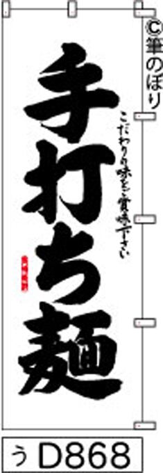 「のぼり【手打ち麺 白地に黒】手書き筆文字[d868](商標登録番号6807113)『受注生産』」