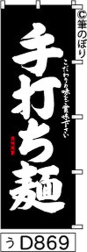 「のぼり【手打ち麺 黒の白抜き】手書き筆文字[d869](商標登録番号6807113)『受注生産』」
