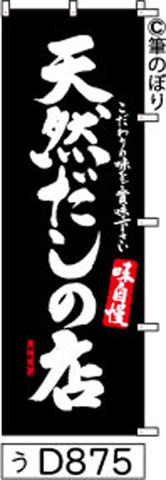 「のぼり【天然だしの店 黒の白抜き】手書き筆文字[d875](商標登録番号6807113)『受注生産』」