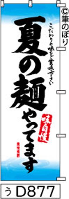 「のぼり【夏の麺類 白地に水色波模様 黒】手書き筆文字[d877](商標登録番号6807113)『受注生産』」
