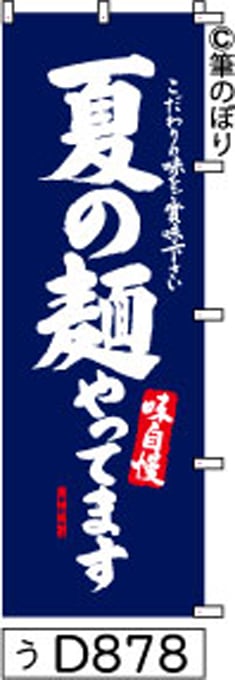「のぼり【夏の麺類 紺の白抜き】手書き筆文字[d878](商標登録番号6807113)『受注生産』」