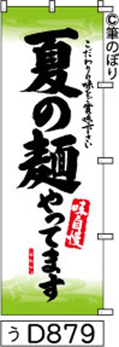 【夏の麺】のぼり旗|送料無料 目立つ手書き筆文字[d879]白地に黄緑波柄黒