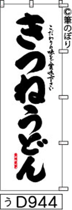 【きつねうどん】のぼり旗|送料無料 目立つ手書き筆文字[d944]白地に黒