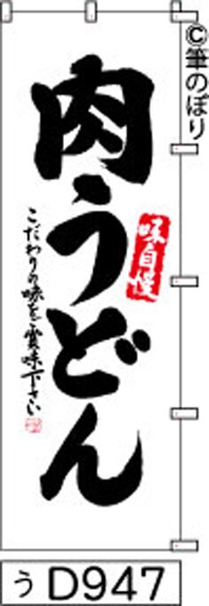【肉うどん】のぼり旗|送料無料 目立つ手書き筆文字[d947]白地に黒