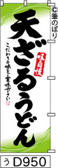【天ざるうどん】のぼり旗|送料無料 目立つ手書き筆文字[d950]白地に黄緑和柄黒