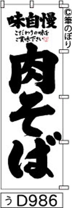 【肉そば】のぼり旗|送料無料 目立つ手書き筆文字[d986]白地に黒