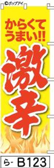 「のぼり【激辛】黄色に赤の手書き筆文字[らB123](商標登録番号6807113)『受注生産』」