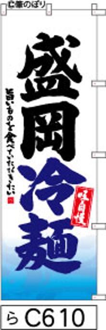【盛岡冷麺】のぼり旗|送料無料 目立つ手書き筆文字[c610]白地に水色波模様黒と紺