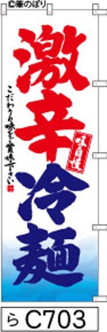 【激辛冷麺】のぼり旗|送料無料 目立つ手書き筆文字[c703]白地に流水模様赤と紺