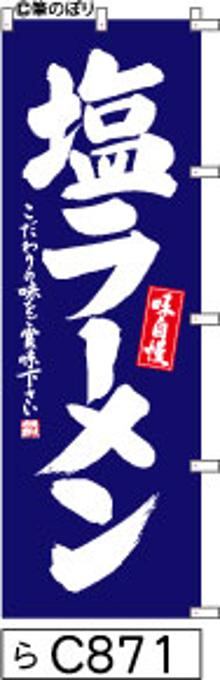 「のぼり【塩ラーメン】青の白抜き手書き筆文字[らC871](商標登録番号6807113)『受注生産』」
