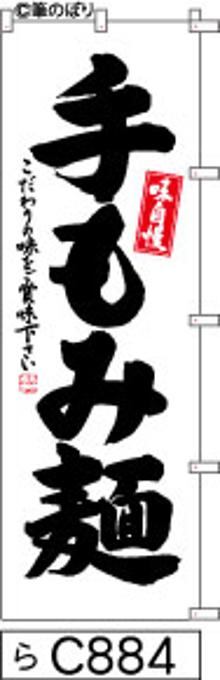 【手もみ麺】のぼり旗|送料無料 目立つ手書き筆文字[c884]白地に黒