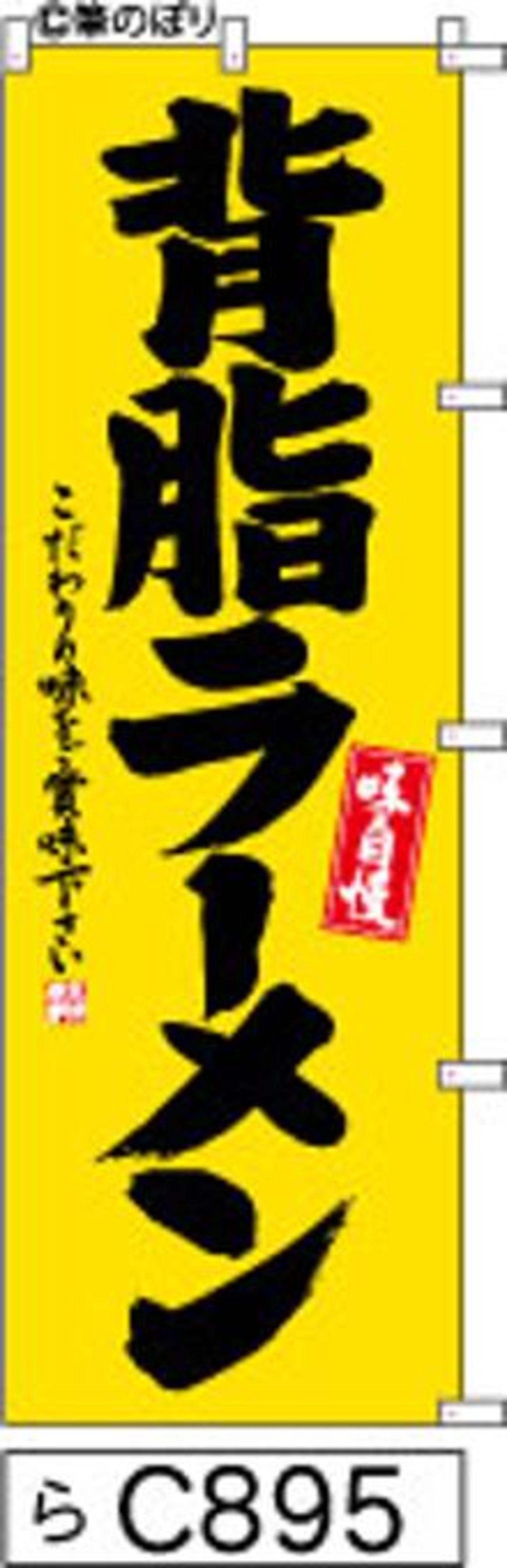 「背脂ラーメン のぼり旗 黄色に黒の手書き筆文字 [らC895](商標登録番号6807113)『受注生産』」