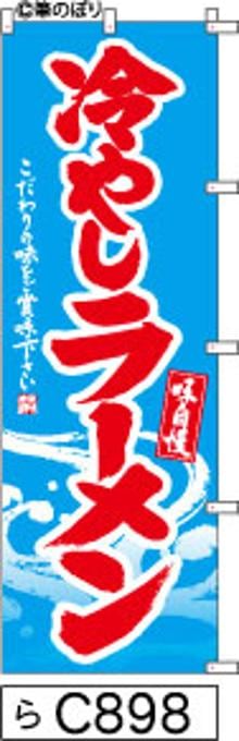 【冷やしラーメン】のぼり旗|送料無料 目立つ手書き筆文字[c898]水色に波柄赤