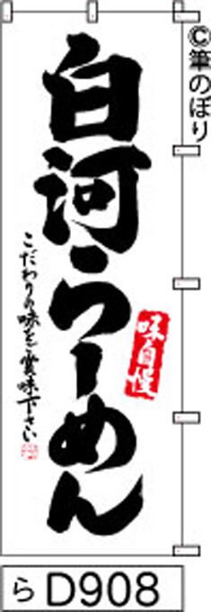 「のぼり【白河らーめん 白地に黒】手書き筆文字[d908](商標登録番号6807113)『受注生産』」