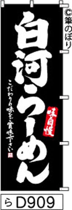 「のぼり【白河らーめん 黒の白抜き】手書き筆文字[d909](商標登録番号6807113)『受注生産』」