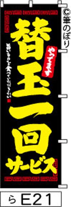 【替玉1回サービス】のぼり旗|送料無料 目立つ手書き筆文字[e021]黒に黄色