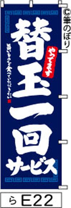 この【替玉一回サービス 紺地×白抜き筆文字 のぼり旗】で、