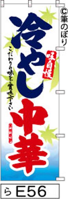 【冷やし中華】のぼり旗|送料無料 目立つ手書き筆文字[e056]白地に水色波柄青と赤