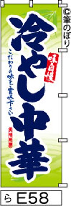 【冷やし中華】のぼり旗|送料無料 目立つ手書き筆文字[e058]白地に黄緑和柄紺